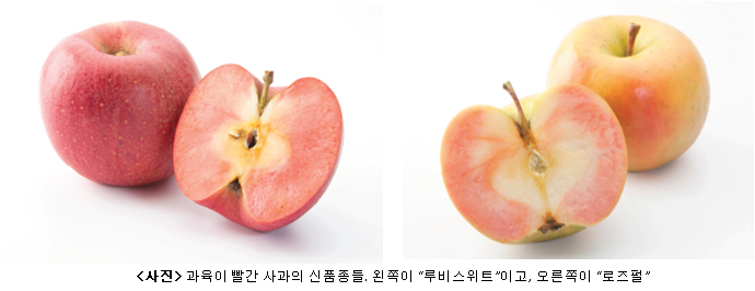 지금까지는 과육이 빨강색이면서 맛이 있는 사과는 시장에 유통되지 않았었다. 과육이 빨간 사과는 맛이 전혀 없었기 때문이었다. 이번에 발표된 “루비스위트”와 로즈펄”은 과육에 안토시안을 포함하고 있기 때문에 빨강색을 띠고 있으며, 맛도 있어서 많은 생산자들과 소비자들의 기대를 모으고 있다.