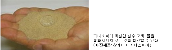 일본의 파나소닉이 개발한 <마법의 모래>에 세계가 주목하고 있다. 모래알 표면에 특수한 막을 형성시킴으로써 누수를 방지하는 <발수 모래>가 그것으로, 건조한 토지의 토성 회복과 농지화에 커다란 역할을 담당함은 물론이고, 심각한 환경 문제와 식량 문제의 해결에도 기여할 것으로 기대하고 있다.