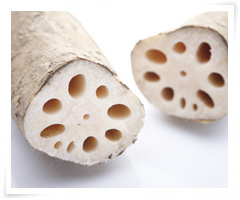 고요한 연못에 두둥실 떠 있는 연꽃 한 송이는 잔잔한 평화를 안겨줍니다. 바로 이 ‘연’은 꽃, 잎, 연잎, 연근까지 모두 한방 약재로 쓰일 만큼, 버릴 것 하나 없는 유용한 식물인데요. 그중 가장 많이 이용되는 것이 연의 뿌리인 연근입니다. 맛이 달고 따뜻한 성질을 지녀 요리나 약재로 많이 활용됩니다. 주성분인 녹말에다 비타민 C, 식이섬유, 칼륨 등이 풍부하게 들어 있어 면역력 향상은 물론 노폐물 배출에도 효과적이죠. 끈적거리는 ‘무틴’이라 불리는 성분은 위 점막을 강화해 위염, 위궤양 등 소화기 질환 예방에 도움을 줍니다. 또한, 감기, 가래 등 호흡기 질환으로 고생하는 분들이 먹어도 좋아요. 연근을 갈아 즙을 내어 꿀을 넣어 차로 마시면 기침과 가래 예방에 도움을 받을 수 있어요. 연잎을 말려 뜨거운 물에 우려낸 ‘연잎차’는 변비를 없애주고 입 냄새 제거에 효과적이며, 숙취 해소에도 도움을 준다고 해요. 연근을 고를 때는 굵고 묵직한 것으로 골라주세요. 변색하기 쉬우므로 단면이 드러난 것은 랩으로 싸서 냉장고에 보관하면 좋습니다. 식초 물에 담가 보관하면 변색을 좀 더 늦출 수 있으니 참조하세요.
