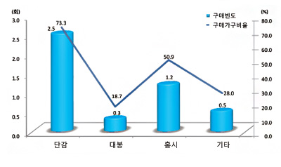 <그림2> 소비자가구의 신선감 유형별 구매빈도와 구매가구 비율