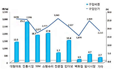 <그림3> 시장별 신선단감 구입비중 및 구입단가
