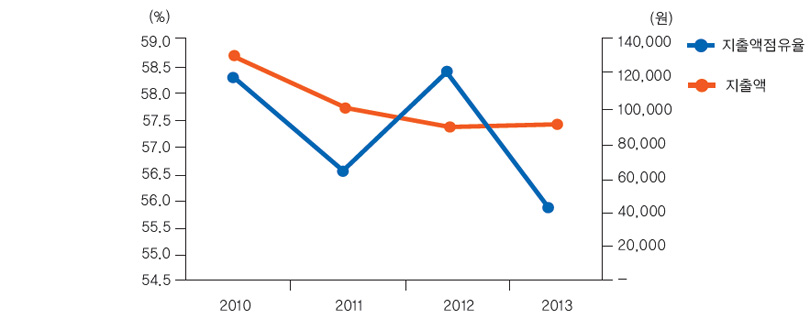 <그림1> 신선한 무 상위 20% 구입 지출액 및 점유율 추이
