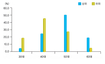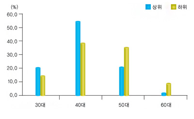 <그림2> 신선한 무 구입 연령별 상·하위 비율
