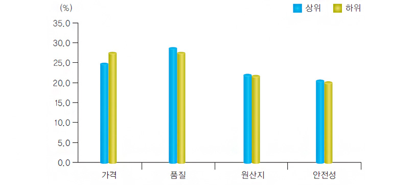 <그림2> 김치 선호 식품구입시 고려요인별 상·하위 비율