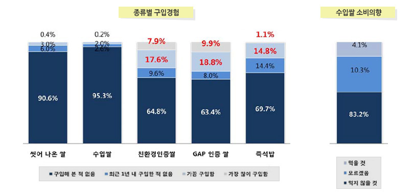 <그림1> 종류별 구입경험 / 수입쌀 소비의향