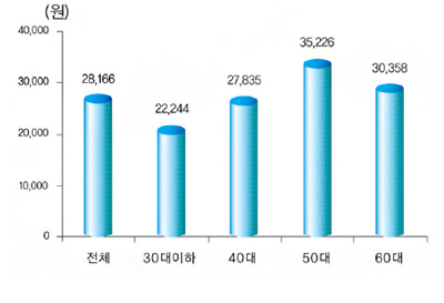 <그림1> 연령별 신선양파 구입액 분포