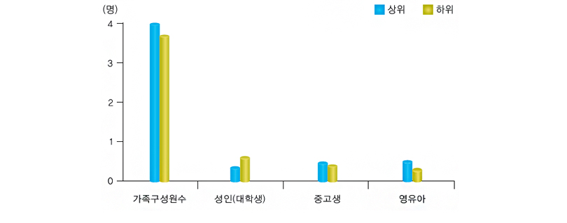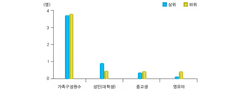 <그림2> 무 가공식품 구입 가족구성원별 상·하위 가족수
