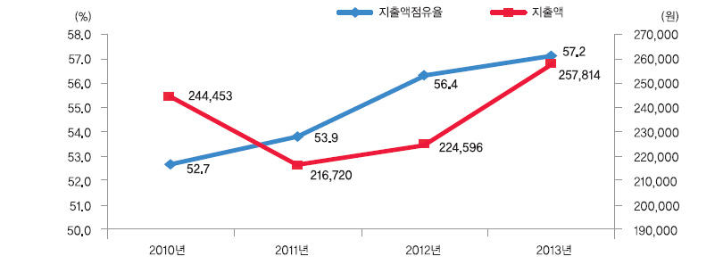 <그림1> 신선사과 선호 지출액 및 점유율 추이