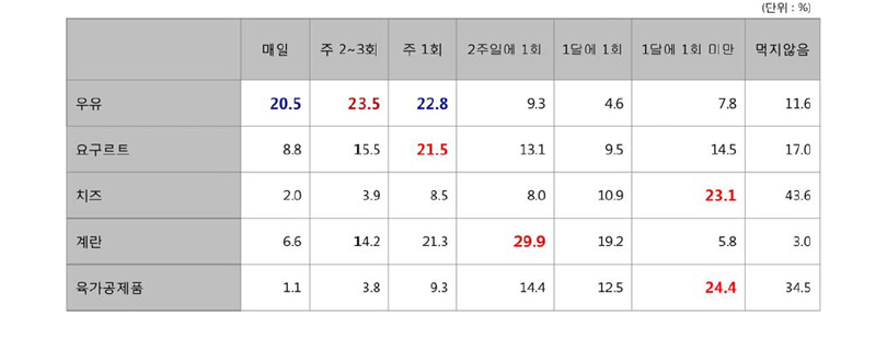 <그림1> 유제품 및 육가공품 구입 주기