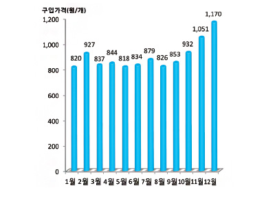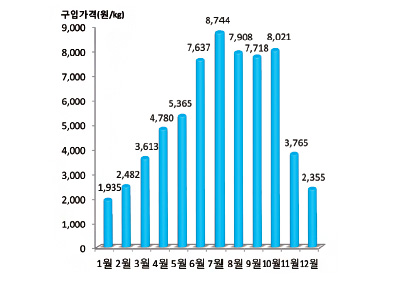 <그림3> 국내산 신선감귤류 월별 구입가격