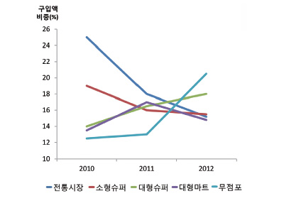 <그림6> 연도별 신선오렌지 구입처별 구입액 추이