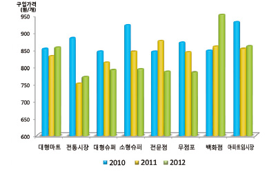 <그림8> 연도별 신선오렌지 구입처별 구입가격