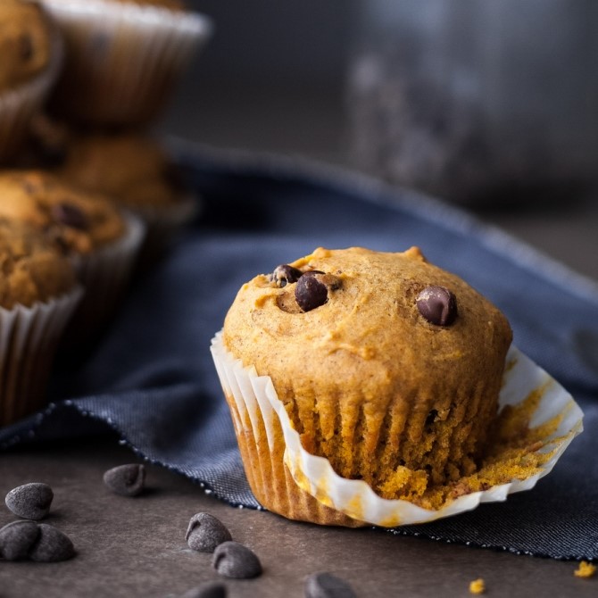 재료 : 달걀 2개, 올리브오일 60㎖, 단호박 245g, 우유 60㎖, 설탕 150g, 소금 1/2 티스푼, 베이킹소다 2티스푼, 시나몬 가루 1티스푼, 밀가루 220g, 초콜릿 칩 90g