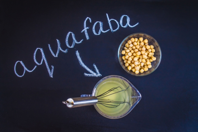 또한 병아리콩은 각종 반죽에 들어가는 ‘아쿠아파바’(Aquafaba)의 역할을 맡을 수 있다. 이는 병아리콩이나 렌텔콩 등을 삶은 후 나오는 콩물을 말하며, 거품기로 5분 가량을 빠르게 휘저으면 액체가 크림처럼 변한다. 디저트를 만들 때 고체형태를 유지해 주는 달걀 흰자 역할을 하는 셈이다. 이에 따라 병아리콩은 비건 케이크나 비건 마요네즈 등에 사용할 수 있어 코로나19 확산후 인기인 ‘홈 베이커리’ 에서도 활용도가 높아질 것으로 보인다.