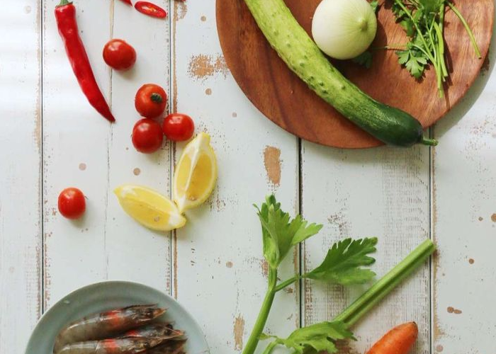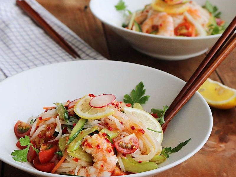 주재료 : 쌀국수면 또는 버미첼리면 ½ 봉, 셀러리 1대, 방울토마토 6개, 당근 ¼ 개, 오이 ½ 개, 양파 ½ 개, 새우 6마리, 레몬 1개, 고수 약간