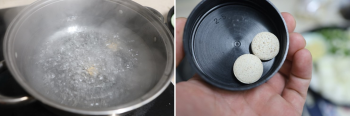 물이 끓기 시작하면 코인 육수 2알을 넣어줍니다.
